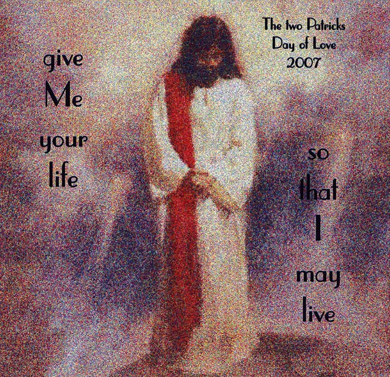 These talks were given by the two Patricks on the Day of Love 2007. Jesus has asked for these Days of Love and for many people to come and hear His Word. The words you hear on this CD are His Words as spoken by the Patricks. Welcome, welcome to this Heart, My children. I Love you and I thank you for coming on these special Days that I have called for. Do you come here to seek the Truth? For, My children, that is all that I have ever given. Many do not like to hear the Truth as did the scribes and the Pharisees. They closed their hearts and their minds to the Truth who stood before them. Will you, too, close your eyes to the Truth as I speak?... Day of Love, Saturday 13 January 2007.
